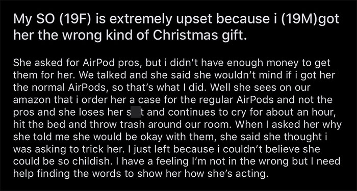 My Ex Girlfriend Fed Me Some Bullsh*t About Breaking Up With Me For Her Mental Health. She Got With Someone A Few Days Later. Today She Asked For The Christmas Gift She Gave Me While We Were Dating