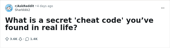Reddit user Sharkkkk2 asked everyone on the platform to share the "cheat codes" they've found in real life, and people immediately started listing what helps them avoid stress and be more productive.