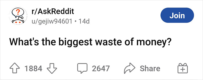 To find out what people can do without, Redditor u/gejiw94601 made a post on r/AskReddit earlier this month, asking everyone, "What's the biggest waste of money?" Since then, it has received over 2.6k comments, prompting a discussion on our budgeting, spending habits, and everything inbetween. Here are some of the most popular answers to their question.