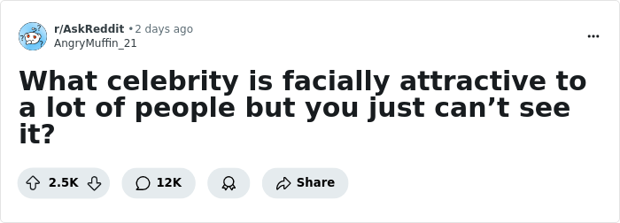 Recently, some celebrity-savvy internet users took to a viral thread on AskReddit to share which stars—whom most people would say are facially attractive—really aren’t all that appealing to them. Scroll down to read their opinions.