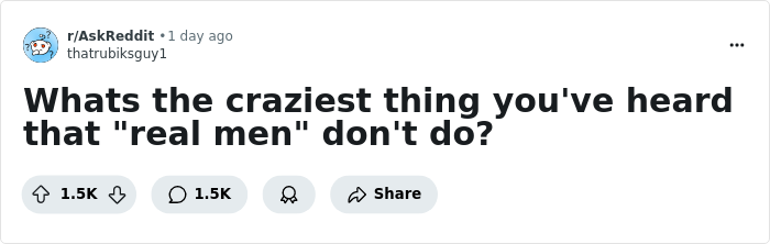 Today’s list is a collection of various bizarre statements of the “real men don’t do” mentality netizens have heard throughout their lives and decided to share in an online thread under a question: "What's the craziest thing you've heard that 'real men' don't do?” Here you’ll find a whole spectrum of things, from reading books to liking cats.
