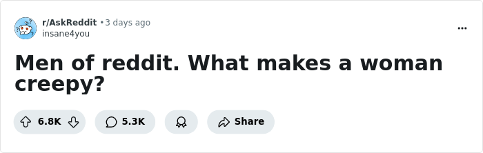 One Redditor recently asked men what makes a woman creepy, and well… some of these stories belong in a psychological thriller rather than real life.