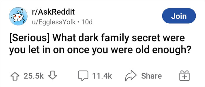 "I decided to ask Reddit about darker family secrets to see what would come up, and surprisingly, it gained a lot more attention than I anticipated!" they said.