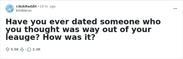 One online thread has people sharing what happened after they went out with someone way out of their league. Whether their endeavors come with a happy ending or not, at least they now have a story to tell.