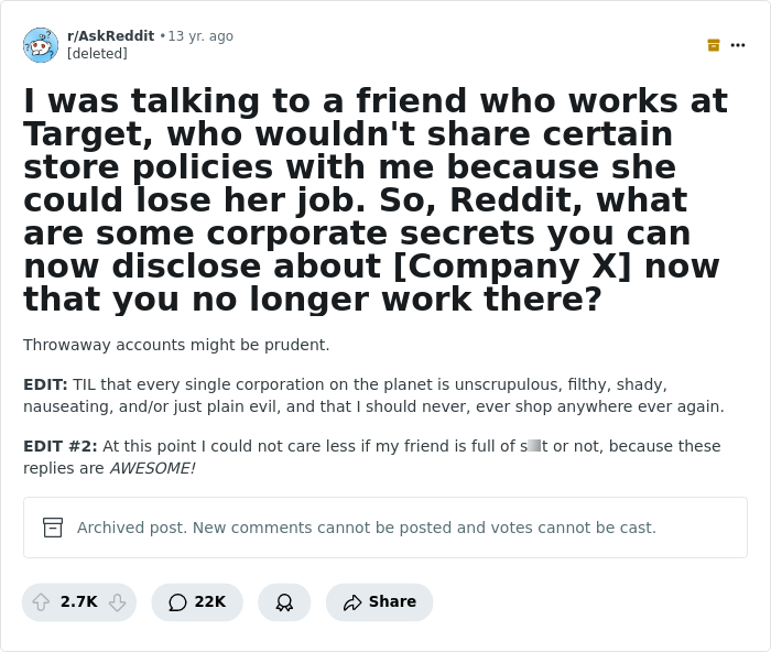 Leave it to the top notch BP "journalists" to recycle a Reddit thread from 13 years ago.