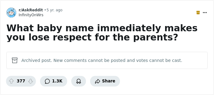 Load More Replies...In France, and I think in most of Europe, the registrar has the right to refuse à name if it's ridiculous or damageable to the kid, or even if it goes badly with the last name. The parents can then go to court if they disagree.