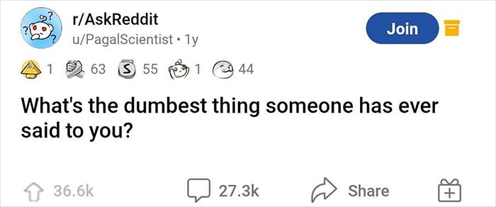 Bored Panda was very interested to find out what the inspiration for the OP's viral thread was. According to the redditor, they drew inspiration from their own life. "I heard one of my friends say something extremely dumb, and had a thought in mind about how much dumber people can get, so I didn't really give too much thought to it and just asked it on the subreddit," u/PagalScientist shared.