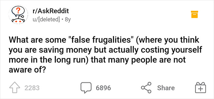 So when one user reached out to 'Ask Reddit' inviting people to share "false frugalities" — low-cost things that turned out to be expensive — most people are unaware of, the thread immediately became a hit. We’ve gathered some of the most illuminating responses to share with you, so continue scrolling! Be sure to upvote the ones you agree with and then chime in with your own experiences in the comments.