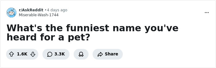 Today, we’re featuring some of the funniest and weirdest pet names that people have ever heard, as shared in two brilliant online threads. Scroll down for a good laugh and some fun naming inspiration for the next animal you rescue.