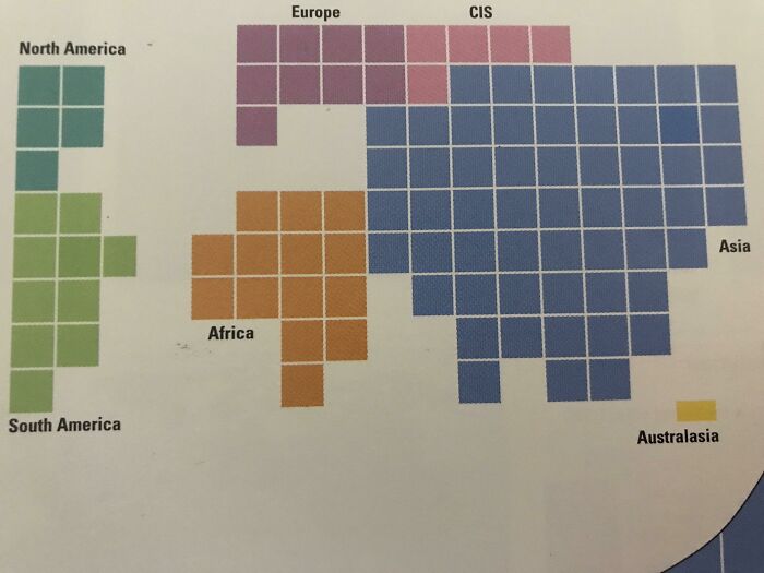 Interesting Map Made In 1996; One Square Equals 1% Of The World’s Population
