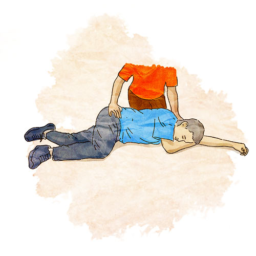 Hm. First aid courses I took with the Red Cross taught us to turn the fainted person in the lateral safety position, with flexed knees. It helps them breathing until an ambulance arrives. It's called "the life-saving position". 02-Cazuta-...7490a8.jpg
