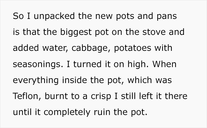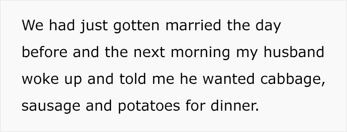 The author decided to follow his request to the letter, which led to completely ruining their brand-new Teflon pot. Her story was a real conversation starter—hundreds of people started sharing their own experiences about how their spouses revealed their true selves only after saying "I do". We collected some of the best answers from the thread, so check them out below.