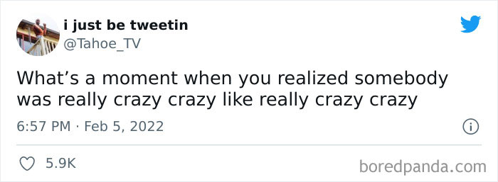 However, there's a fine line between quirky and creepy behavior. And media personality TahoeTV decided to find it. So he made a tweet asking people to describe the exact moment they noticed that someone was out of their mind.