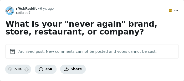 Today, we’re looking at some of the biggest offenders in the business world, as shared by frustrated internet users in a viral thread on AskReddit. Scroll down to get a better understanding of how some brands, stores, restaurants, and companies earned their ‘never again’ moniker for these disappointed people.