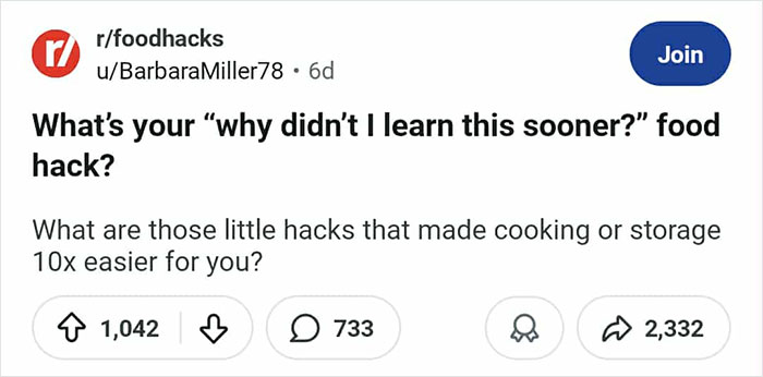 So if you’re looking for tips and tricks that will allow you to spend more time eating delicious meals and less time stressing over the stove, we’ve got you covered. Home cooks have been sharing their most brilliant kitchen and food hacks, so we’ve compiled them all below. Some of this advice may sound unconventional, but it also might make you twice as efficient when whipping up dinner. Enjoy scrolling through, and be sure to upvote the genius ideas that you can’t wait to try!
