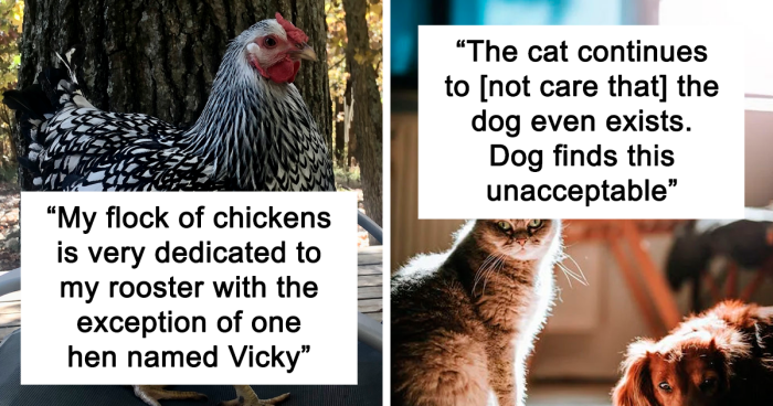 I have an Airedale terrier, 4 ducks, 50 chickens, and 6 goats. The chickens should have their own soap opera. One of the most interesting conflicts is with Tim Allen, who is one of my hens who was born with a deformity called scissor beak. Basically it's harder for her to eat, preen, etc, because her beak isn't lined up correctly, but she still manages. She's become my little buddy because of the help she needs, and she has her own section of the chicken run to eat without being bothered. Tim has the biggest balls out of all of my hens. If another hen so much as looks through the fence at her (and remember, I have 50 birds, so it happens all the time), she'll charge it and act all tough. Because she's behind a fence. When I put her back in the run after she is done eating, she tries to be best friends with everyone and most of the birds walk away. She'll try to share a dust bath: rejected. Group preening happening? Rejected. It's like she's two different birds depending on which section of the run she's in. That or she's come up with different "rules" in her head based off of where she is at the time. Either way, it's hilarious. Don't worry, she isn't lonely. She spends more than enough time with her human, and she also has a rag-tag group of misfits that tend to accept her, even when she's being a d**k. Chickens are so funny and can be very affectionate. If you have the room in your yard and in your heart, get some! Plus, fresh eggs are the bomb. Edit: Formatting and here's a picture of [Tim Allen](https://imgur.com/a/PWqlKWO) in all of her beauty and wisdom. This beauty brings a smile to my face every day!