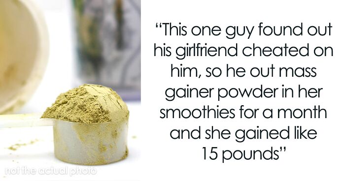 I heard of this guy who found out his girlfriend cheated on him, so he out mass gainer powder in her smoothies for a month and she gained like 15 pounds.