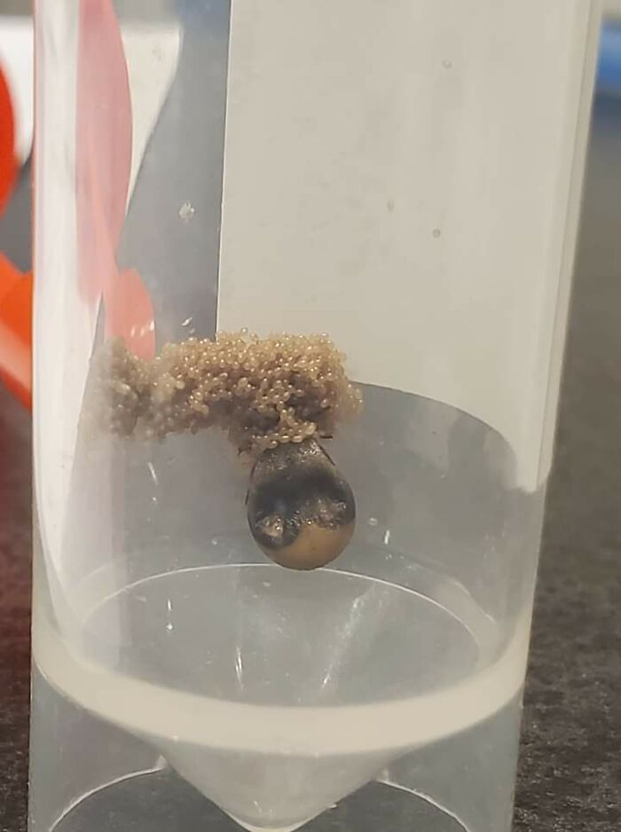 "After months in a sealed container with no additional feeding she laid eggs. This gives you an idea of how long a tick can be dormant and how many eggs one female can lay."