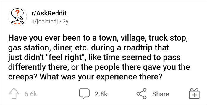 “Have You Ever Been Somewhere During A Road Trip That Just Didn’t ‘Feel Right?'” (30 Answers)