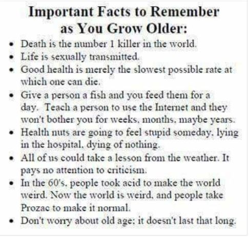 I used to know this old guy who every time was asked how he was, he would respond by, “well, I woke up and everything hurts and it means that I’m alive, so I’m good I guess.” This is the reality, folks. So let’s look at the bright side.