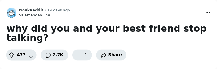 To find out how this conversation started in the first place, we reached out to Reddit user Salamander-One, who posed the question: "Why did you and your best friend stop talking?" She was kind enough to have a chat with Bored Panda and open up about some of her own friendships.
