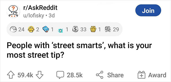 Reddit user lofisky wanted to find out what they are, so they made a post on Ask Reddit: "People with 'street smarts', what is your most street tip?" Within just a few days, thousands of people took the opportunity to share their precious wisdom and help people ensure their safety even in the most dire situations.