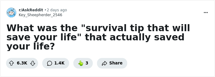 “What Was The ‘Survival Tip That Will Save Your Life’ That Actually Saved Your Life?” (50 Answers)