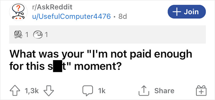 In an attempt to find out what pushes people over the edge, Redditor u/UsefulComputer4476 recently posted this question on the platform: "What was your 'I'm not paid enough for this s*** moment?" And I think they did because the replies came flying in!