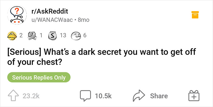 So no wonder so many people, when given a chance, would take an opportunity to share their secrets, big or small, anonymously. This is what happened in this Ask Reddit thread that served as a safe place for spilled secrets people got tired of carrying on their shoulders.