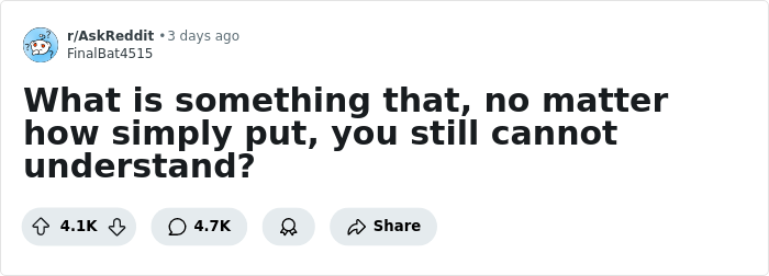 Apparently, many share the same fascination with the world. Recently, a Reddit user asked, “What is something that, no matter how simply put, you still cannot understand?” Dreaming while sleeping, the vastness of space, and sailing against the wind are just some of life’s many facets that blow people’s minds.