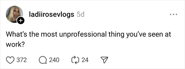 Someone recently asked, "What’s the most unprofessional thing you’ve seen at work?" and people didn't hold back. From colleagues freeing the nipple to bosses being tone-deaf about the Los Angeles fires and a woman asking her male coworkers to promote her OnlyFans page, it would seem there's a lot going on behind the closed doors of companies. Bored Panda has put together a list of the craziest answers. Don't forget to upvote your favorites, and feel free to share your own accounts of unprofessional behavior in the comments below.