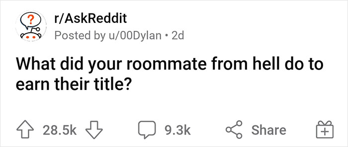 Hit TV shows like Friends may have convinced us that sharing a tight space with someone can lead to life-long meaningful friendships. Unfortunately, that's rarely the case, and one thread on Ask Reddit illustrates it perfectly. A few days ago, Redditor 00Dylan reached out to people online to hear about their nightmarish roommates from hell and wondered how they earned this title.