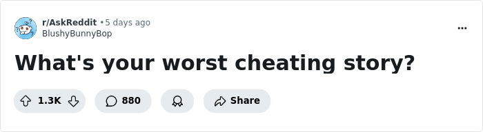 To better understand these situations, Reddit user BlushyBunnyBop asked people to share their worst stories about infidelity, whether they had experienced the heartbreak themselves or witnessed someone else.