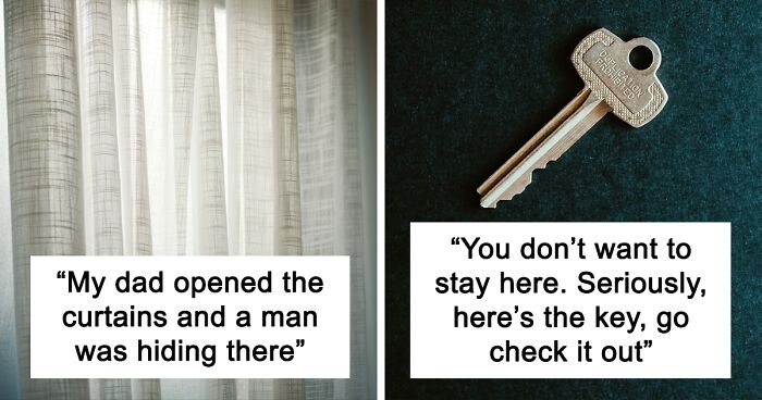 My dad went to a hotel once and checked in to a first floor room. He went in the room, put his stuff down, opened the curtains...and a man was hiding there.