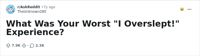 To reassure you that it happens to the rest of us and that there’s no need to beat yourself up over it, we put together a collection of stories where people describe their absolute worst cases of oversleeping. Whether it was a final exam or a crucial business meeting, the stakes were high, and they still managed to mess up.