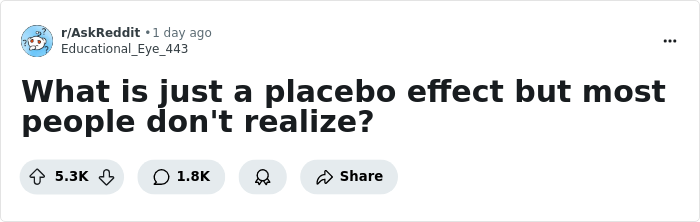 As often happens, it all started on the AskReddit community, where the user u/Educational_Eye_443 just a few days ago created a thread asking: "What is just a placebo effect but most people don't realize?"
