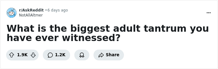 On the other hand, an adult having a tantrum isn’t such a common thing. Yet, it still happens, as can be seen on today’s list. This collection is full of people telling stories about adult tantrums they've witnessed.