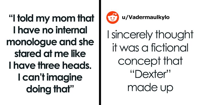 But it turns out, the same rules don’t apply to everyone. Imagine the utter shock when the Reddit user u/Vadermaulkylo realized inner monologues are real and not “a fictional concept that ‘Dexter’ made up,” as he sincerely thought. The reality hit when u/Vadermaulkylo told his mom about not having one, and she stared at him like there was something wrong with her kid. So let’s see u/Vadermalkylo’s post on the subreddit r/NoStupidQuestions, which caused quite a stir in the community.
