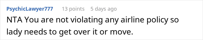 Load More Replies...People. Unless you are very allergic and possibly affected (like with a nut allergy) it is none of your business what your seat neighbor eats.