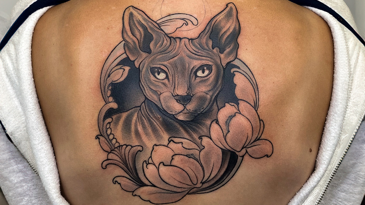 An elegant cat tattoo with attitude. A tribute to a companion who didn’t need noise to be unforgettable. This tattoo captures independence, confidence, and the quiet companionship that never needed constant attention to be deeply felt.