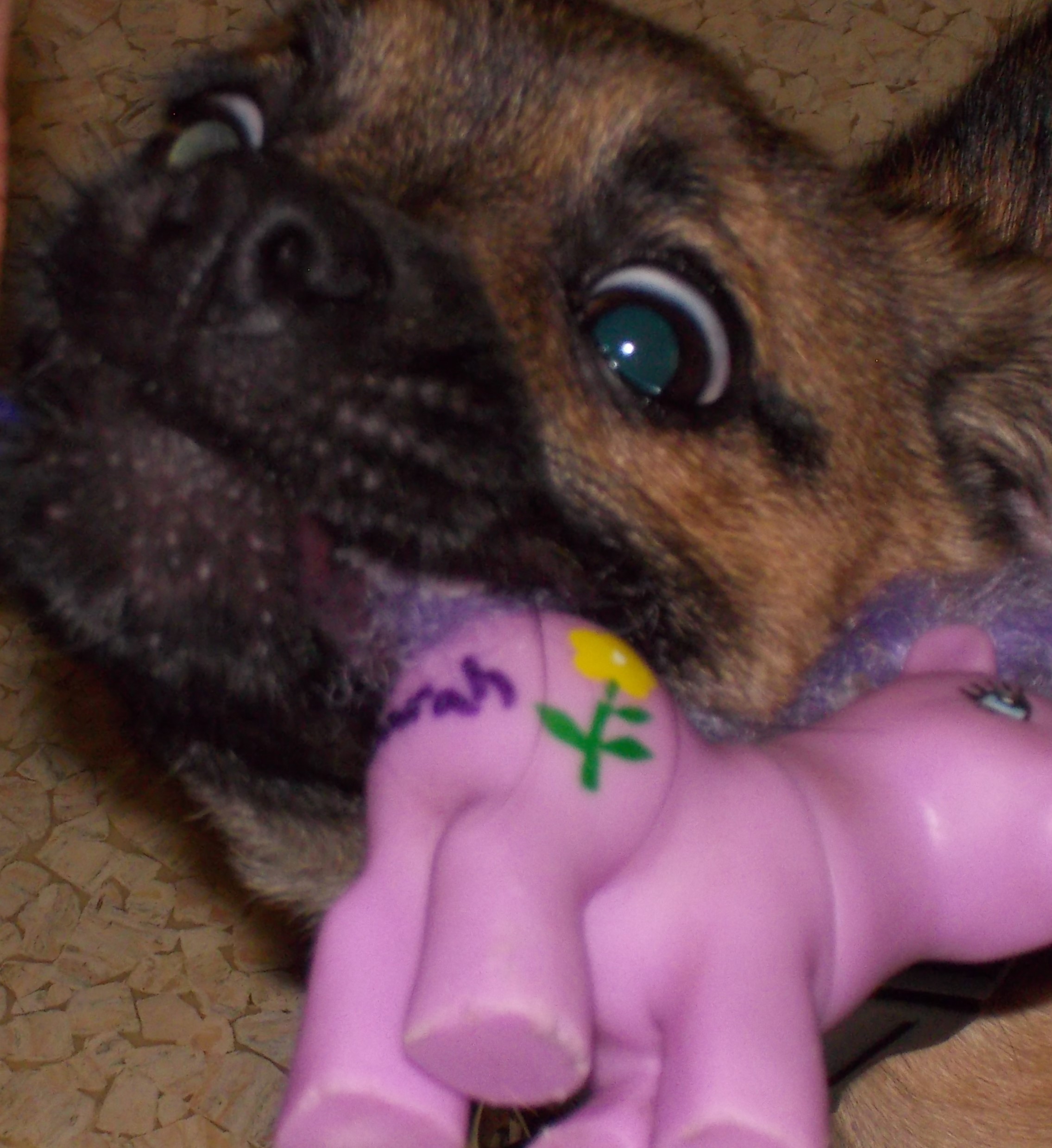 My little Scamper has learned the name of many of his toys!!! I only say "get your fox" or "where's your cow?" and he grabs the right one and brings for a tussle with me. He also knows "kitty, stick, ball, gopher, wolf, giraffe, and baby. (all are stuffed plushy) I am planning for him to learn to put them back in the basket when told but I better plan to be disappointed. Scamper-60...73b96e.jpg