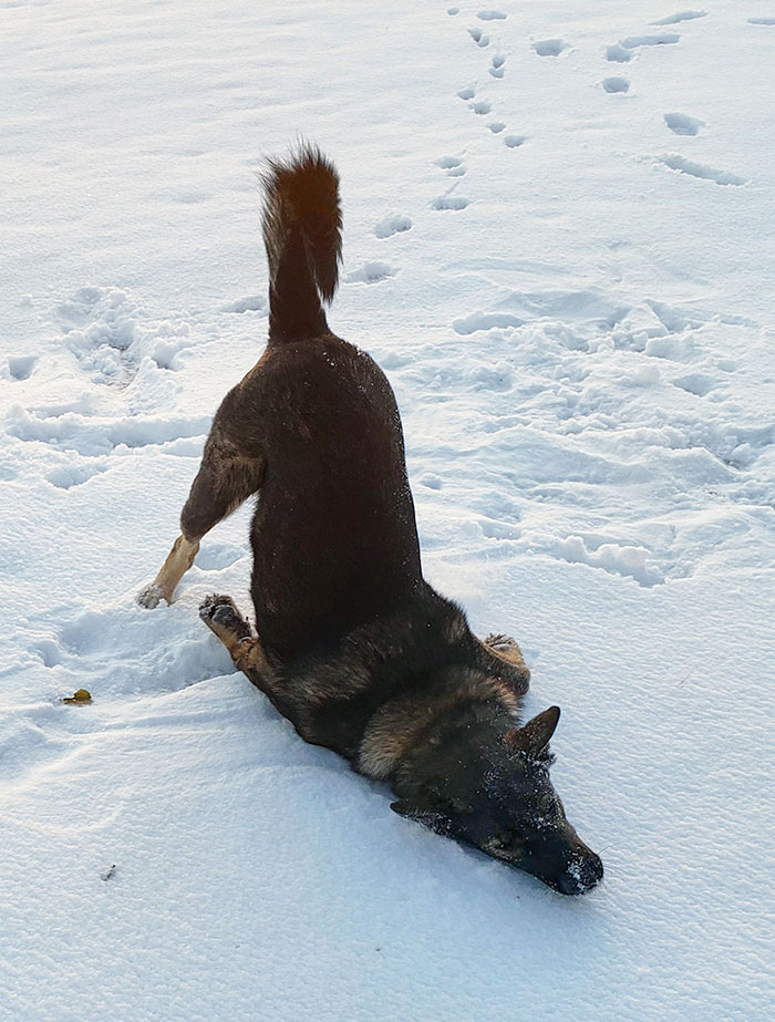My German Shepherd Experienced Snow For The First Time