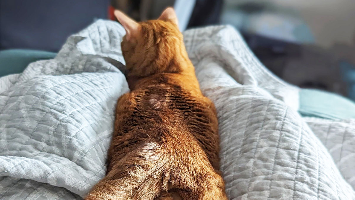 40+ year dog person, but am 70% disabled and could no longer dog. The cat distribution system kicked in and a tiny feral fuzzball adopted me. It was early evening, I had no cat food, no litter box, no kitty bowls. I did have tuna! Cut down a plastic cold cuts container, put in a few forkfulls of tuna. He sat and ate until it was gone. Then repeated the process for almost the entire can! Same dish for water. Emergency litter box, cut the top off old laptop box, lined with garbage bag, filled with sand. Bed time. Took a clean spare blanket, waste of time. At bed time the little mite hopped in the sack, curled up on my chest, and proceeded to purr like mad! Trip to pet store next day, laid in all necessary supplies, made a vet appt. Vet tells me he's in fair shape. Stays in the bed when I'm there, not on chest anymore. Lays at the top of my head now. Follows me around like a puppy. Now about 6 months. Healthy. Very happy to have bed kitty.