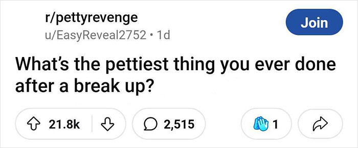 Load More Replies...There's quite a few people who could really do with brushing up on the basics of Law. Just because you are/have broken up does not give you the right to destroy a person's property, do things designed to cause damage to their person (cleaning a loo with their toothbrush), nor report a credit card as stolen when they have a card on your account. There's a line between 'petty revenge', and 'stomping all over the law', and so many people in this article have done the latter.