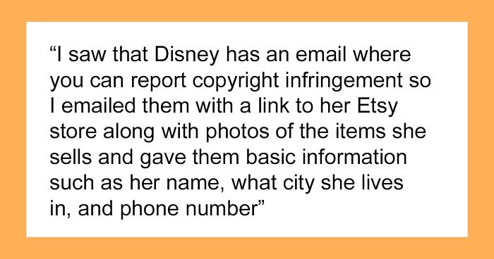 Bored Panda got in touch with the person in the story and they were kind enough to share a few more details. “Disney sent me a generic reply saying they are investigating but they can’t share any information. When I go to her Etsy page is says “seller is on a short break.” Idk if it’s just coincidence or if something happened.”