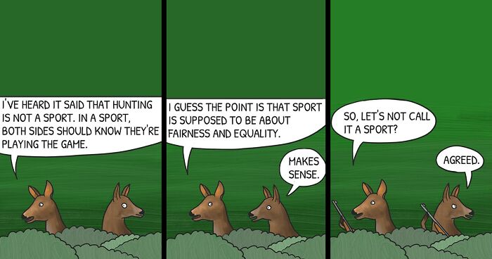 Erik’s comics primarily feature animals discussing their place in the world and other thought-provoking topics. Human characters also make appearances in some strips. To learn more about his series, we invite you to scroll down and check out his latest pieces, along with our interview with the artist himself.