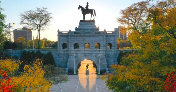About a week ago, drone photography enthusiast Antoine Tissier from Chicago was flying his drone and trying to capture the sunset when he spotted a couple having a photoshoot under the Ulysses S. Grant Monument in Lincoln Park. Antoine quickly captured the amazing photo, landed his drone, and tried to catch up with the cute couple. Unfortunately, by the time he reached the monument, the people were already gone.