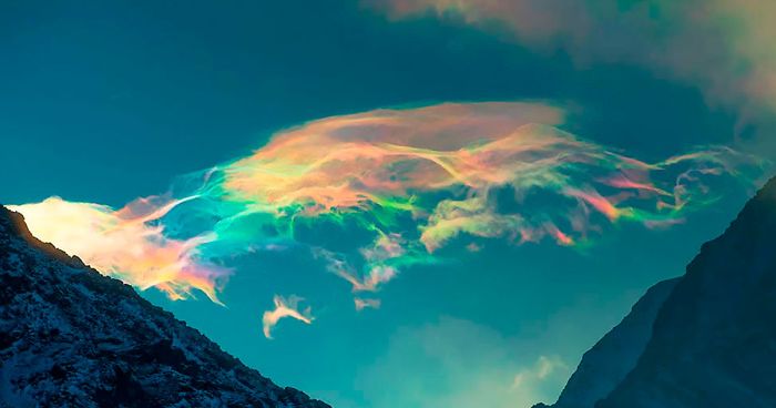 “I captured the iridescent clouds on a frosty winter morning, standing on the frozen Ak-Kem lake,” the woman said. “Iridescence is a fairly common phenomenon in our mountains. When taking these cloud photos, I used a polarizing filter to make the formations even clearer.”