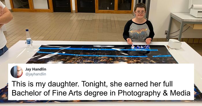 Jay has a lot to be proud of, as Rachel’s achievement is not an ordinary one. The young woman has Down syndrome and in spite of it, she has achieved her goals.