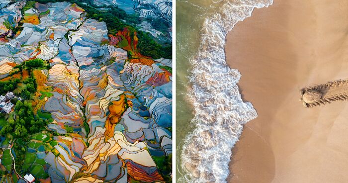 The second article's exploration of aerial photography in the Drone Awards aligns well with the thematic portrayal of landscapes captured through drones in the first article. While the second article celebrates diverse drone photography across the world, the impact of capturing the Dead Sea's unique landscapes with a drone provides an extraordinary perspective.